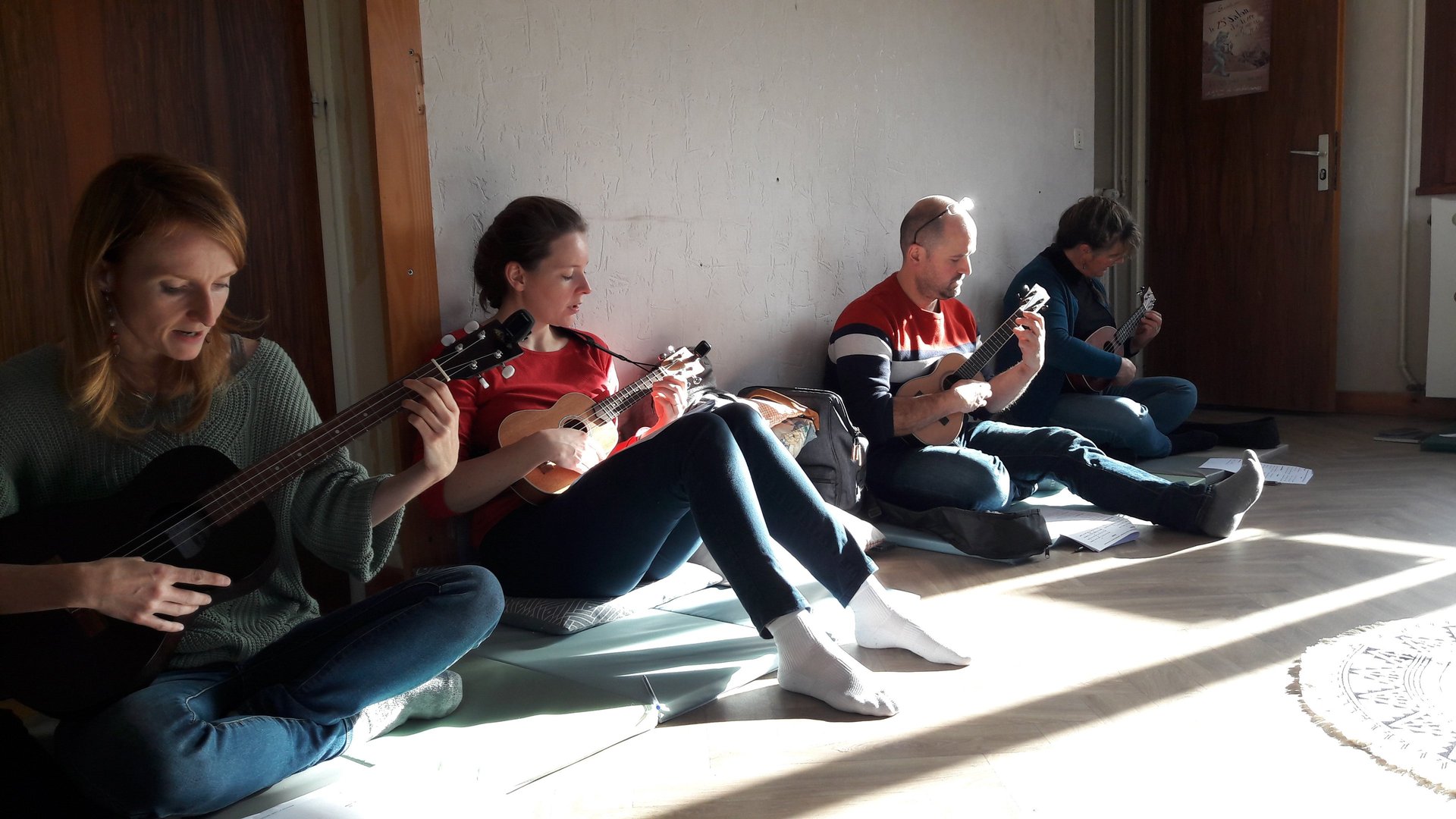 Découvrir l'instrument, savoir l'accorder, jouer les premiers accords et chanter des comptines en accompagnant...