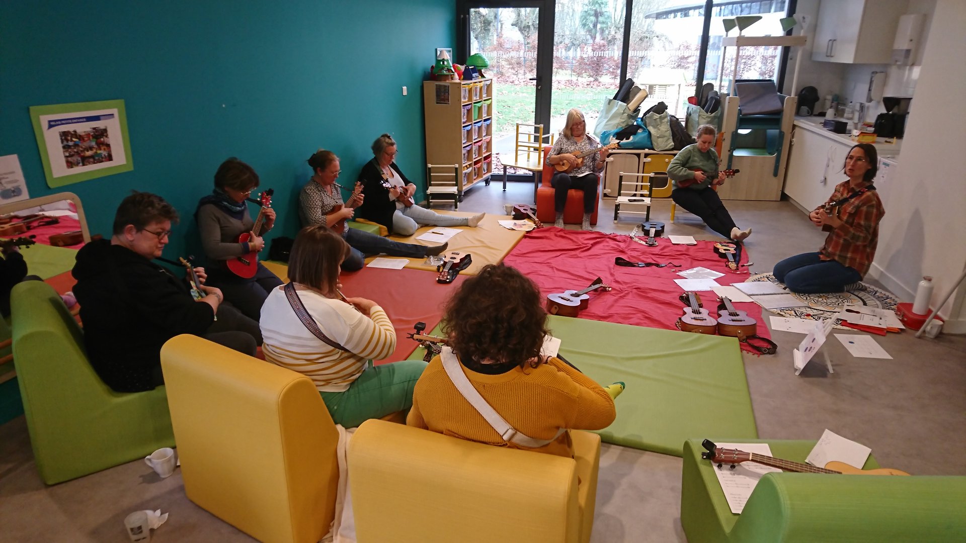 Proposition d'un cycle de plusieurs séances entre parents et professionnel(les) pour la création d'un répertoire de comptines et chansons, autour du ukulélé mais aussi d'autres instruments ludiques et facile d’accès.
